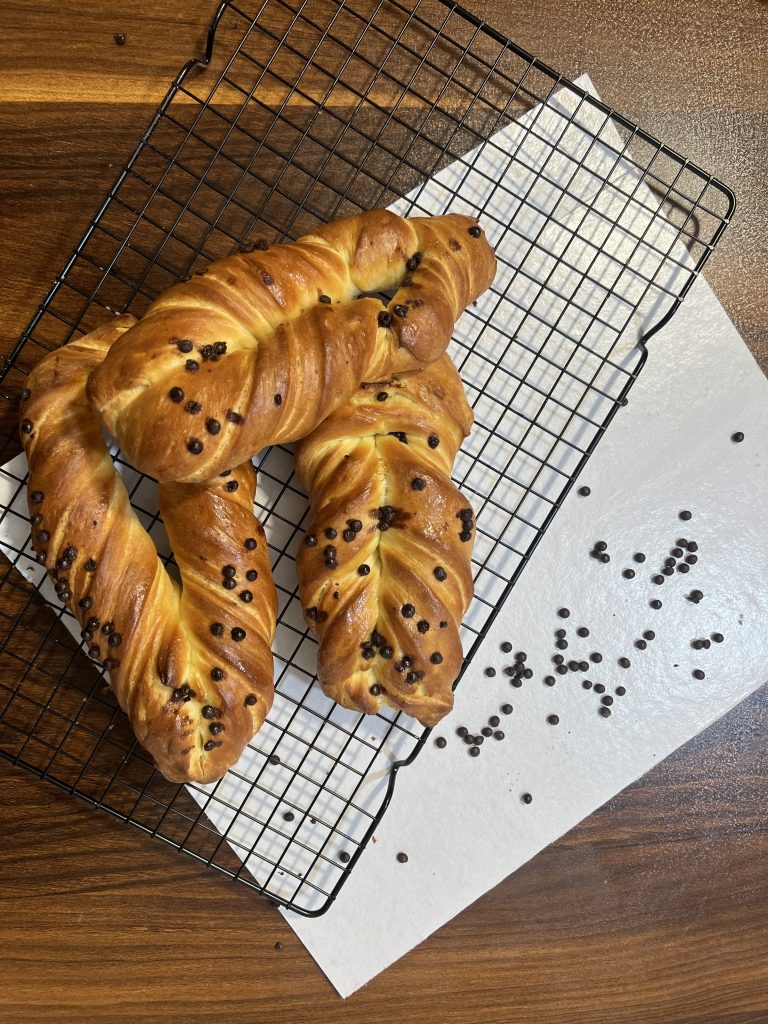 در ادامه در ظرفی که چرب کرده ایم خمیر را به مدت ۶۰ دقیقه استراحت میدهیم، پس از استراحت هوای داخل خمیر را خارج کرده و خمیر را باز کرده یا چانههایی به اندازه ی ۱۰۰ گرمی میگیریم و به اشکال دلخواه خمیر را بپیچید و مجدد ۳۰ دقیقه استراحت میهیم.